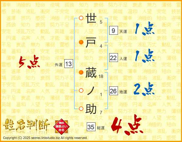 世(5画)戸(4画) 蔵(18画)ノ(1画)助(7画)
