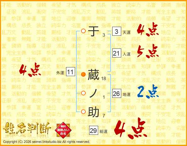 于蔵ノ助さんの総運は29画の4点!
