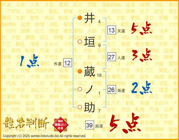井垣蔵ノ助さんの総運は39画の5点!