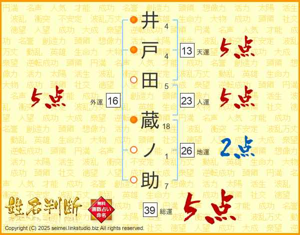 井戸田蔵ノ助さんの総運は39画の5点!