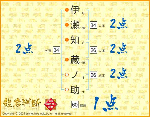 伊瀬知蔵ノ助さんの総運は60画の1点!
