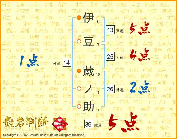 伊豆蔵ノ助さんの総運は39画の5点!