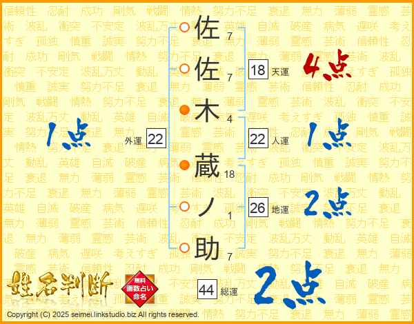 佐佐木蔵ノ助さんの総運は44画の2点!