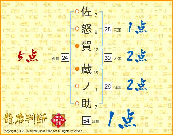 佐怒賀蔵ノ助さんの総運は54画の1点!