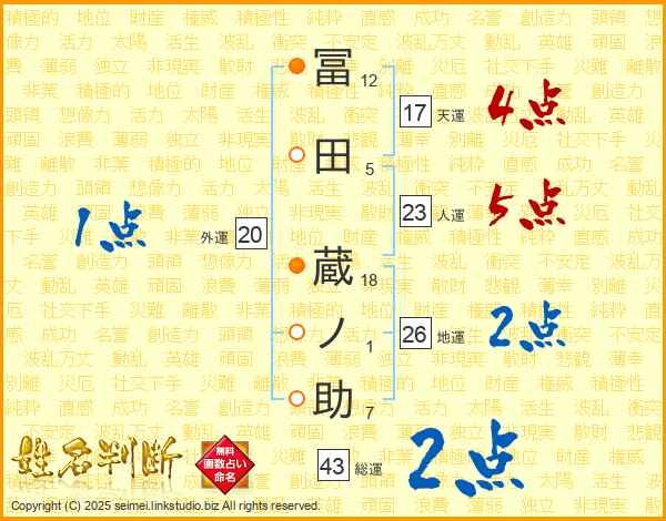 冨(12画)田(5画) 蔵(18画)ノ(1画)助(7画)