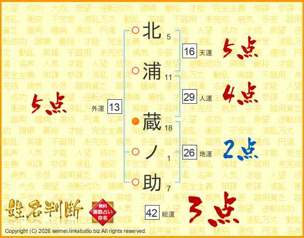 北浦蔵ノ助さんの地運は26画の2点!