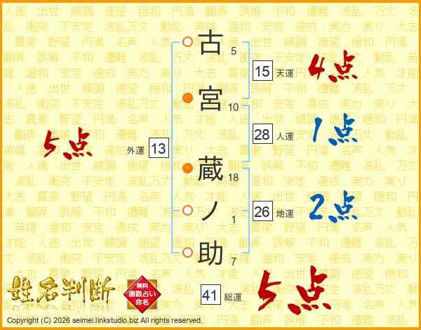 古宮蔵ノ助さんの総運は41画の5点!