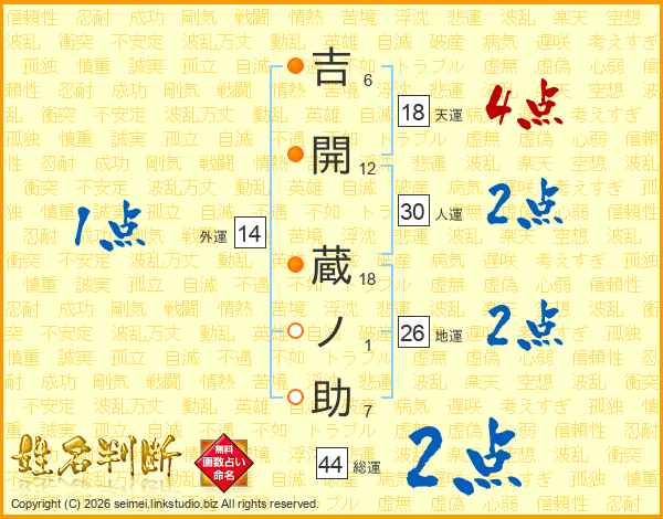 吉開蔵ノ助さんの総運は44画の2点!