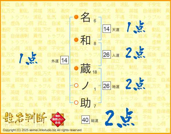 名(6画)和(8画) 蔵(18画)ノ(1画)助(7画)