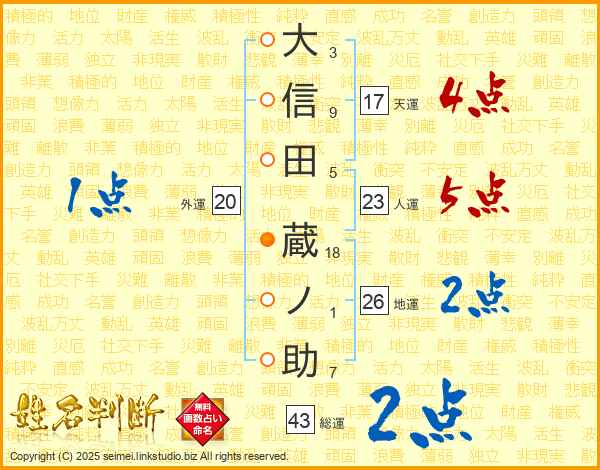 大信田蔵ノ助さんの天運は17画の4点!