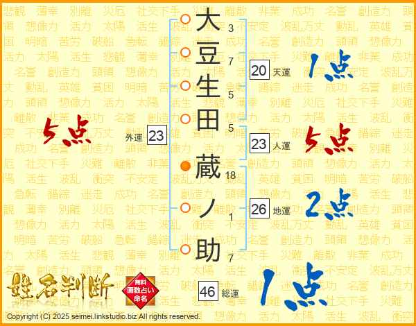 大豆生田蔵ノ助さんの総運は46画の1点!