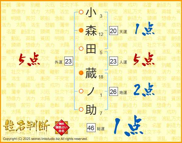小森田蔵ノ助さんの総運は46画の1点!