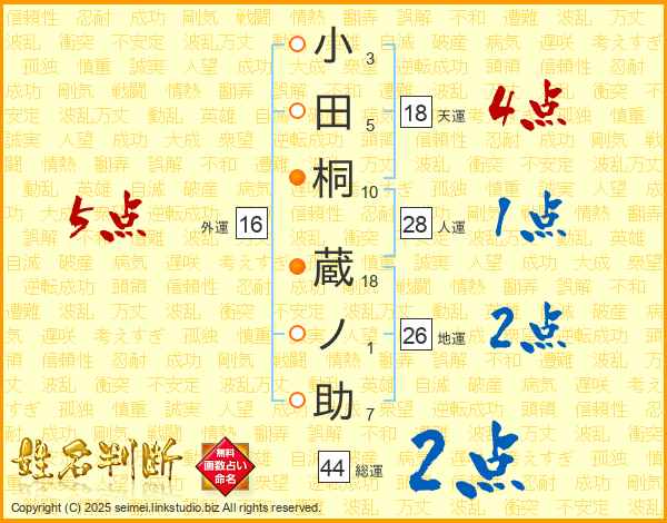 小田桐蔵ノ助さんの総運は44画の2点!