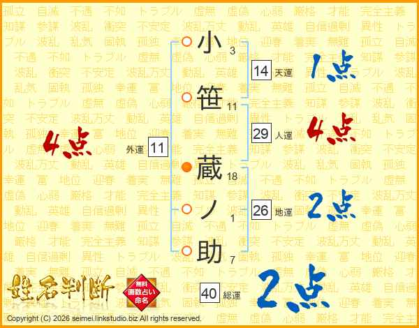 小(3画)笹(11画) 蔵(18画)ノ(1画)助(7画)