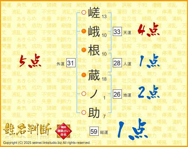 嵯峨根蔵ノ助さんの総運は59画の1点!