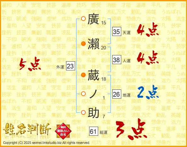 廣瀨蔵ノ助さんの総運は61画の3点!