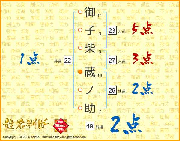 御子柴蔵ノ助さんの総運は49画の2点!