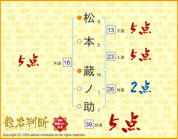松(8画)本(5画) 蔵(18画)ノ(1画)助(7画)