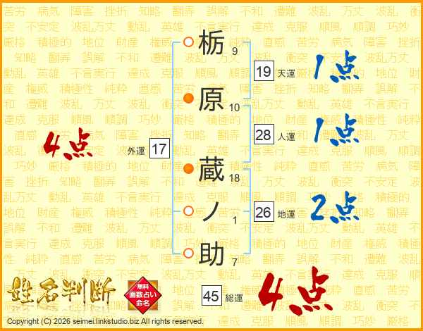 栃原蔵ノ助さんの総運は45画の4点!