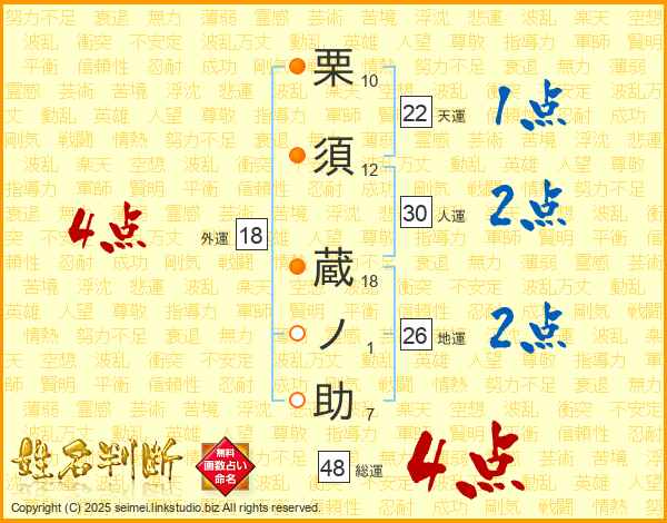 栗須蔵ノ助さんの総運は48画の4点!