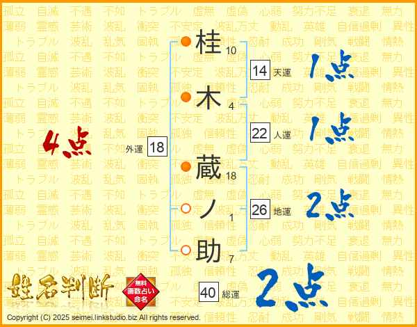 桂(10画)木(4画) 蔵(18画)ノ(1画)助(7画)