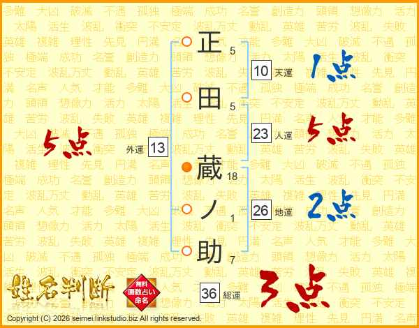 正田蔵ノ助さんの総運は36画の3点!
