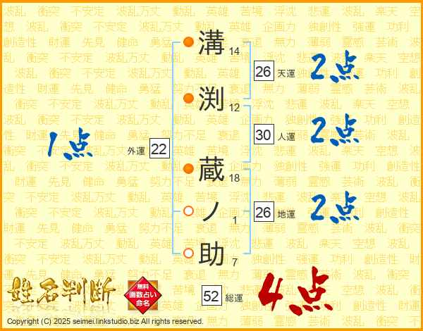溝渕蔵ノ助さんの総運は52画の4点!