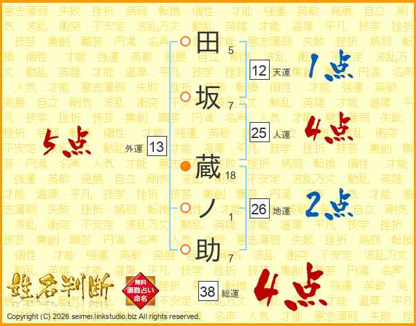 田坂蔵ノ助さんの総運は38画の4点!