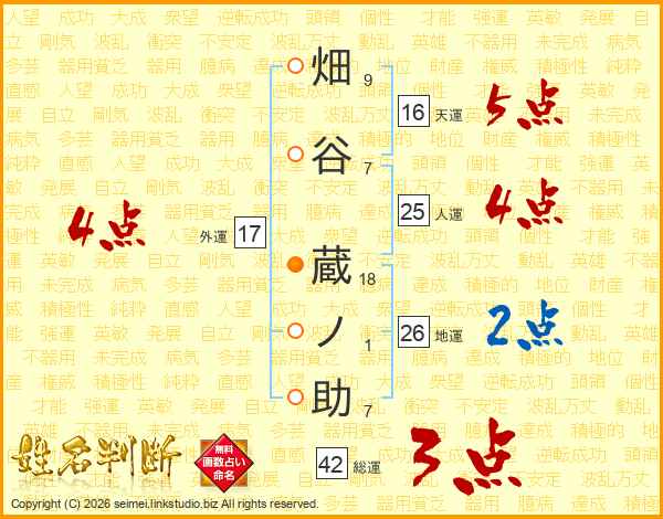 畑谷蔵ノ助さんの総運は42画の3点!