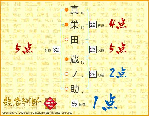 真栄田蔵ノ助さんの総運は55画の1点!