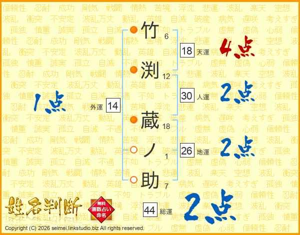 竹渕蔵ノ助さんの総運は44画の2点!