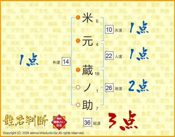 米(6画)元(4画) 蔵(18画)ノ(1画)助(7画)