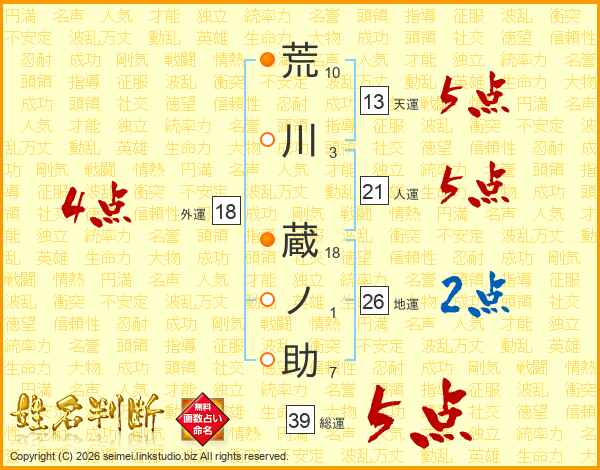 荒川蔵ノ助さんの総運は39画の5点!