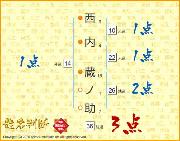 西内蔵ノ助さんの総運は36画の3点!