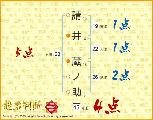 請井蔵ノ助さんの総運は45画の4点!