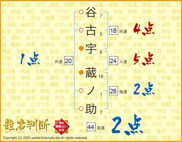 谷古宇蔵ノ助さんの総運は44画の2点!