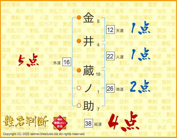 金井蔵ノ助さんの総運は38画の4点!