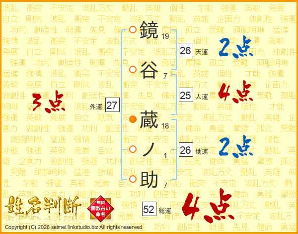 鏡谷蔵ノ助さんの天運は26画の2点!