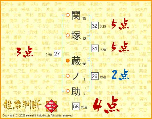 関塚蔵ノ助さんの総運は58画の4点!