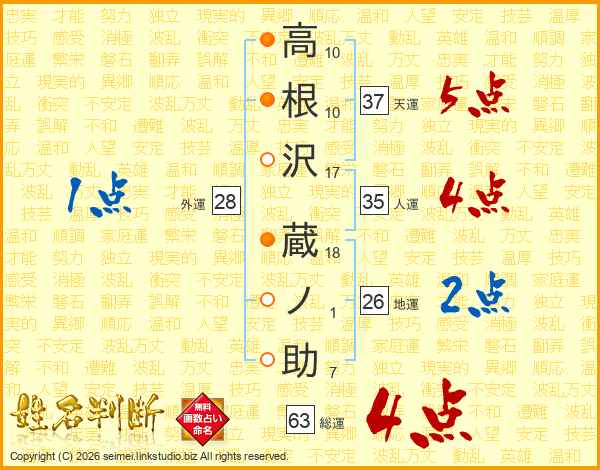 高根沢蔵ノ助さんの総運は63画の4点!