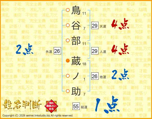 鳥谷部蔵ノ助さんの天運は29画の4点!