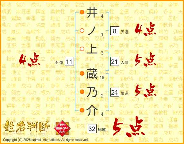 井ノ上蔵乃介さんの総運は32画の5点!