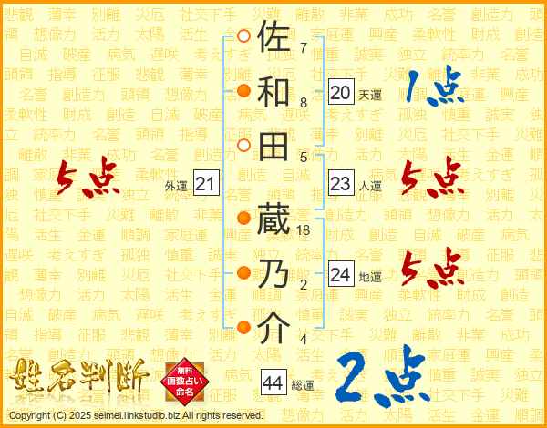 佐和田蔵乃介さんの総運は44画の2点!