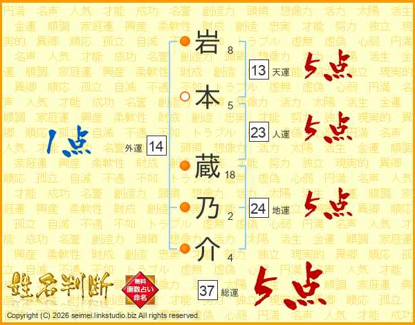 岩本蔵乃介さんの総運は37画の5点!