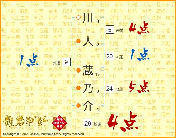 川人蔵乃介さんの総運は29画の4点!