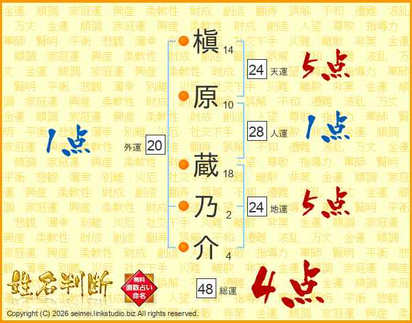 槇(14画)原(10画) 蔵(18画)乃(2画)介(4画)