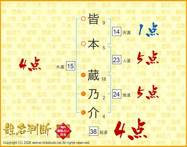 皆本蔵乃介さんの総運は38画の4点!