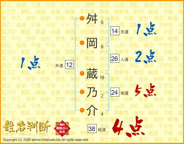 舛岡蔵乃介さんの総運は38画の4点!
