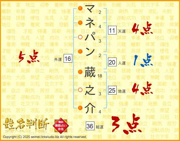 マ(2画)ネ(4画)パ(3画)ン(2画) 蔵(18画)之(3画)介(4画)