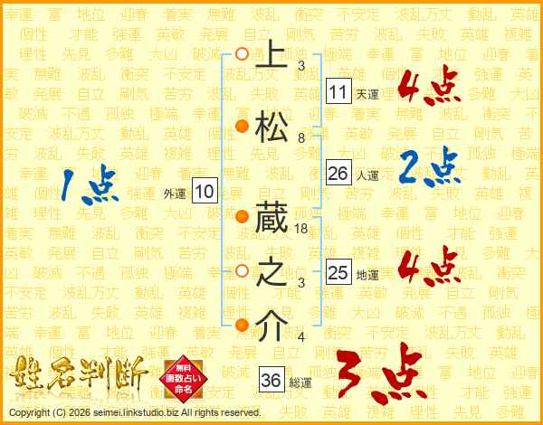上松蔵之介さんの総運は36画の3点!